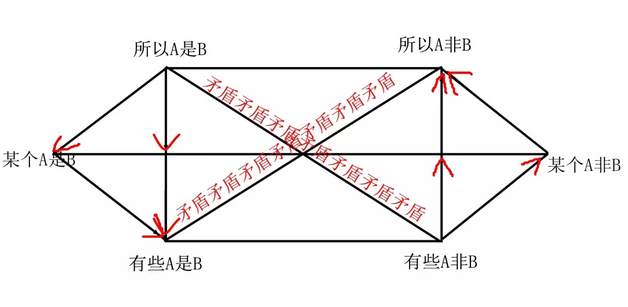①所有A是B ②所有A不是B ③某個(gè)A是B ④某個(gè)A不是B ⑤有些A是B ⑥有些A不是B